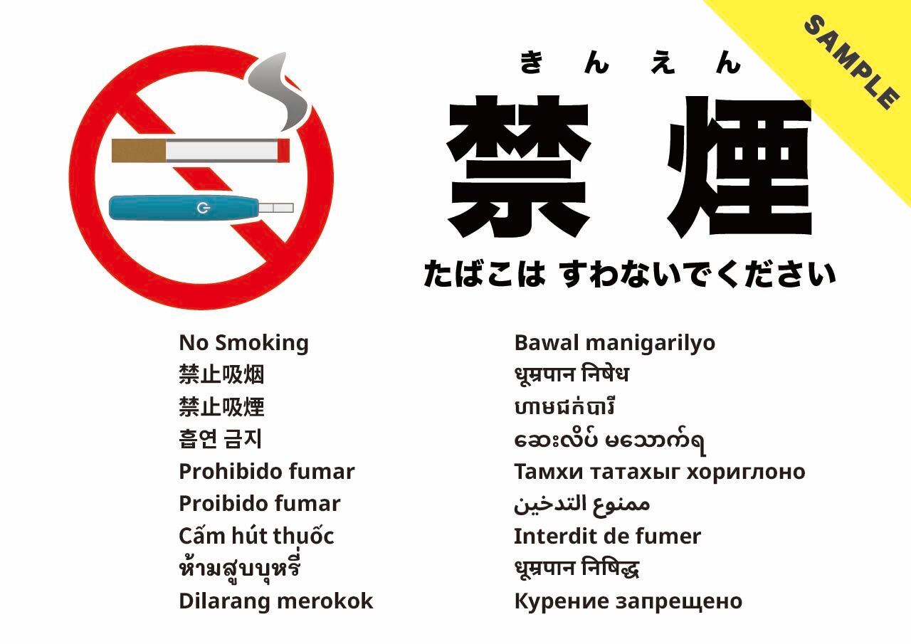 この室内が禁煙であることを周知する張り紙です(電子タバコ含む)。