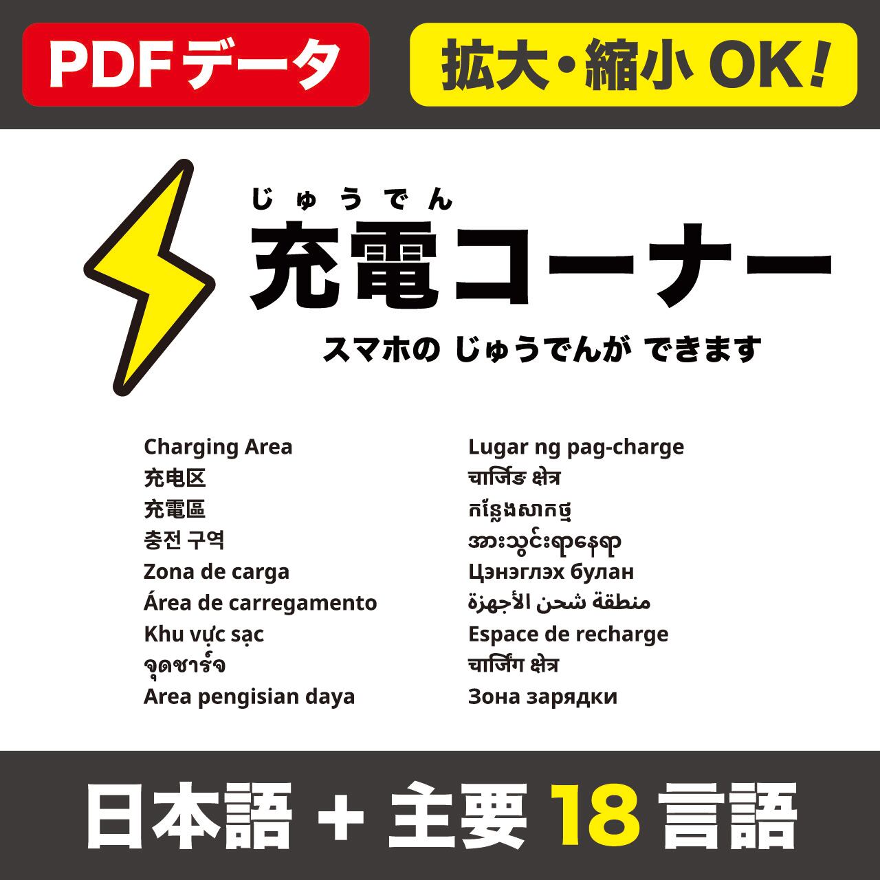 日本語(ふりがな)+18言語(英語/中国語〈簡体・繁体〉/韓国語/スペイン語/ポルトガル語/ベトナム語/タイ語/インドネシア語/タガログ語/ネパール語/クメール語/ミャンマー語/モンゴル語/アラビア語/フランス語/ヒンディー語/ロシア語)