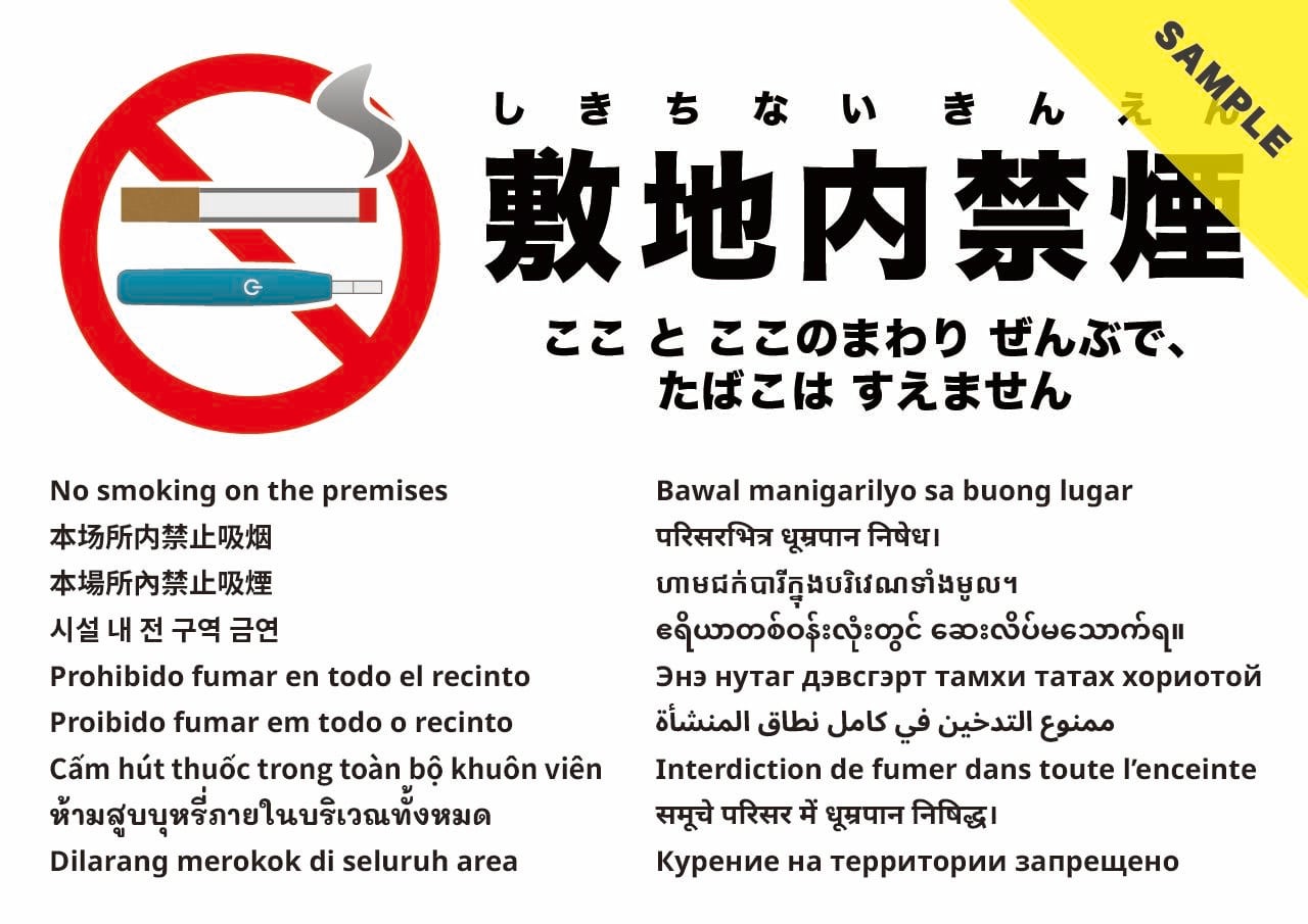 意図:受動喫煙と吸い殻の混入を防止し、来訪者にも一目で伝えることを目的としています。