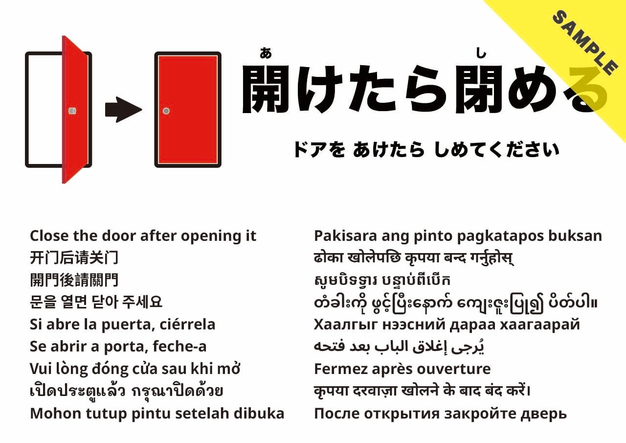掲示場所:倉庫扉・屋外への出入口・冷房、暖房中の部屋の扉など。
