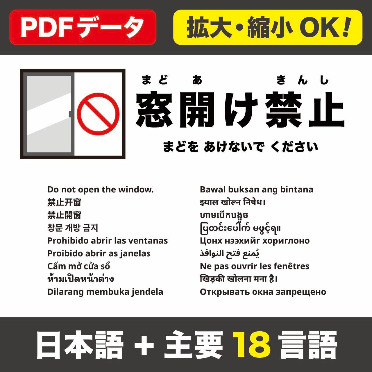 日本語(ふりがな)+18言語(英語/中国語〈簡体・繁体〉/韓国語/スペイン語/ポルトガル語/ベトナム語/タイ語/インドネシア語/タガログ語/ネパール語/クメール語/ミャンマー語/モンゴル語/アラビア語/フランス語/ヒンディー語/ロシア語)