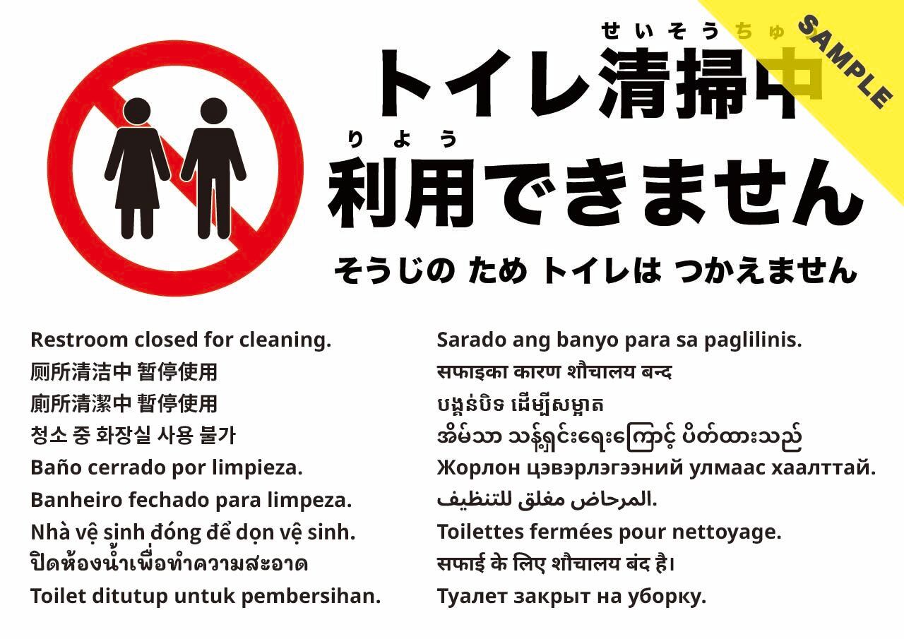 清掃中につきトイレの一時利用休止を知らせる張り紙です。