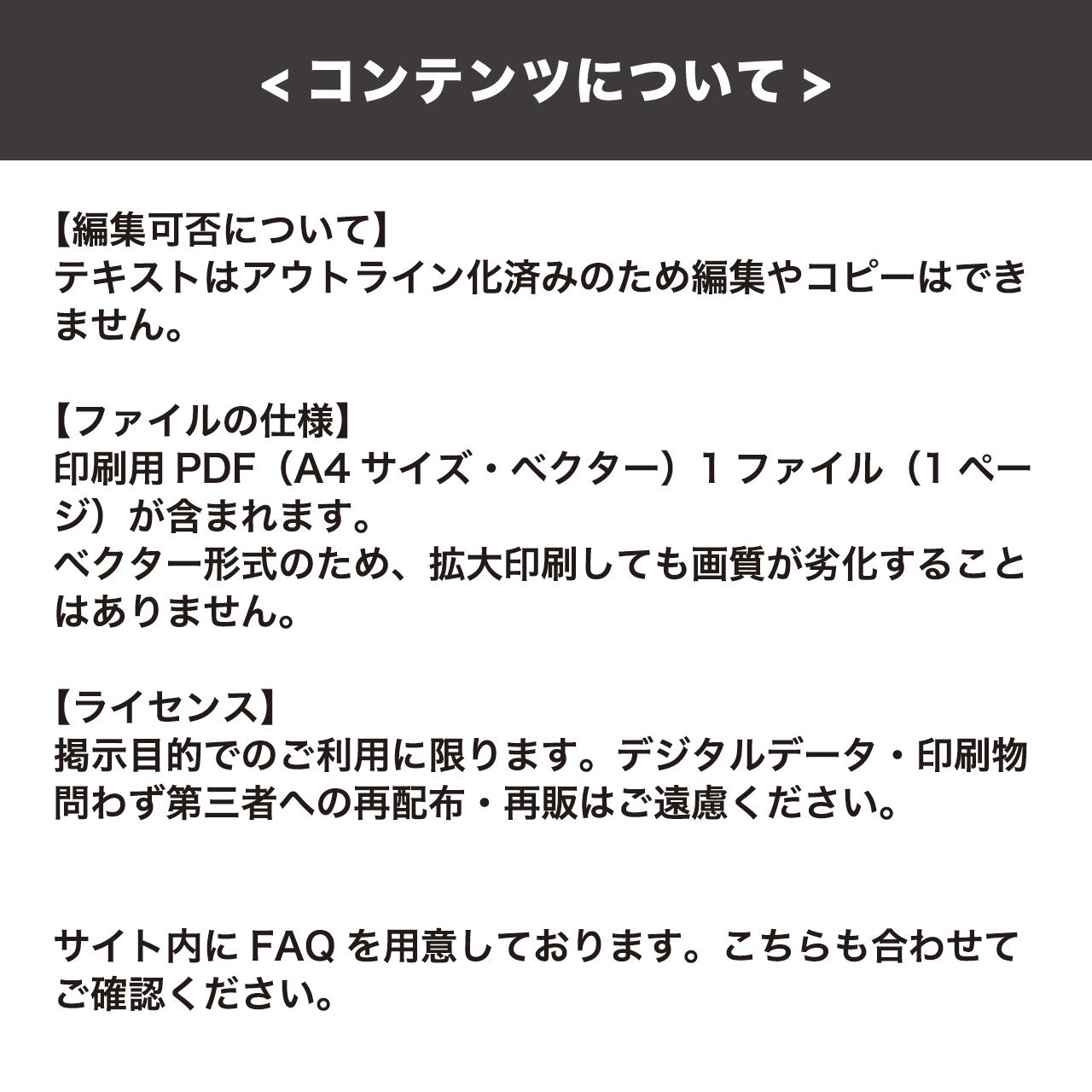 第三者への再配布・再販はできません(施設内の掲示、社内でのファイル共有などはOKです)。