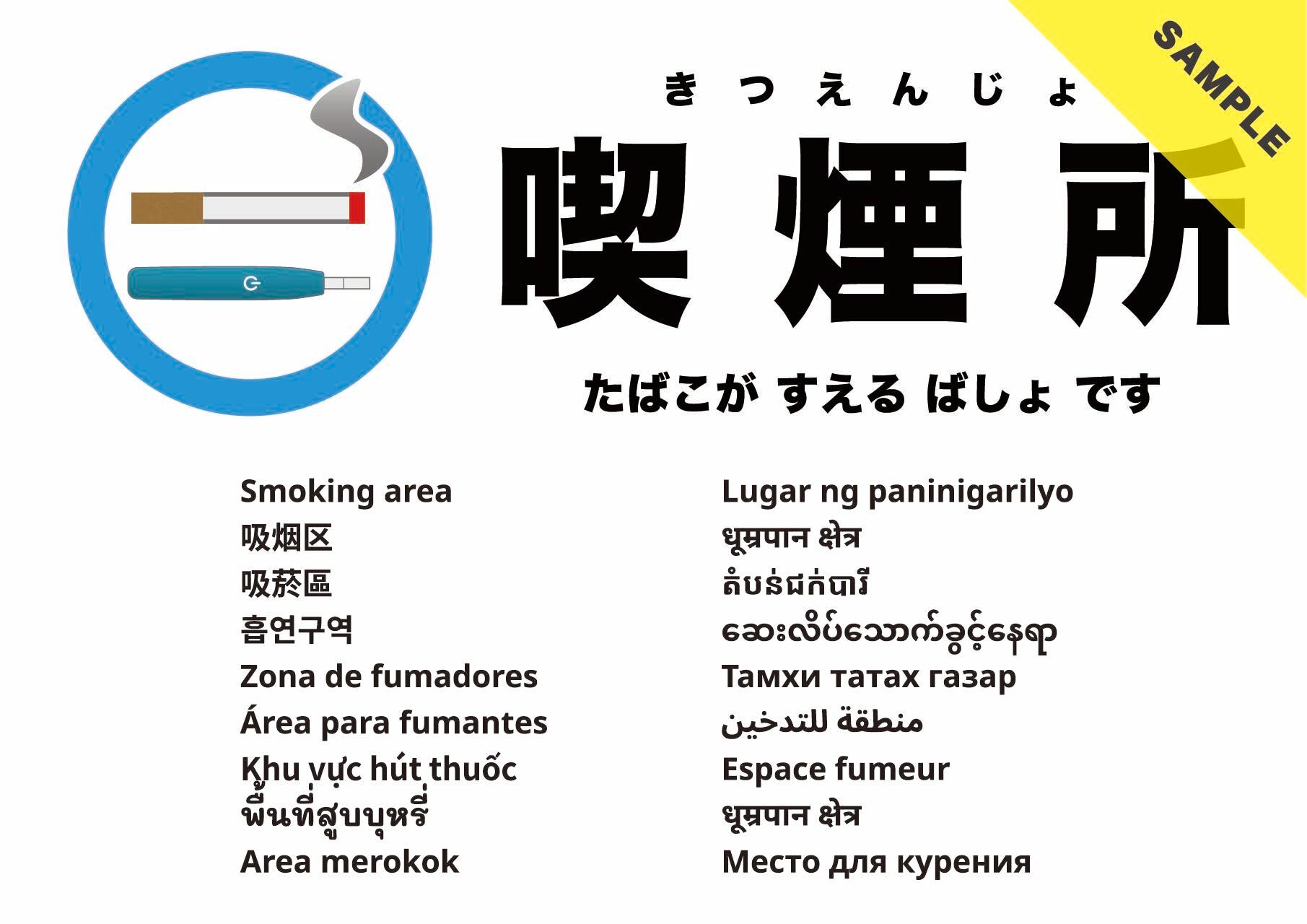掲示場所:喫煙スペース入口・屋外の所定区画・ベンチ周辺。
