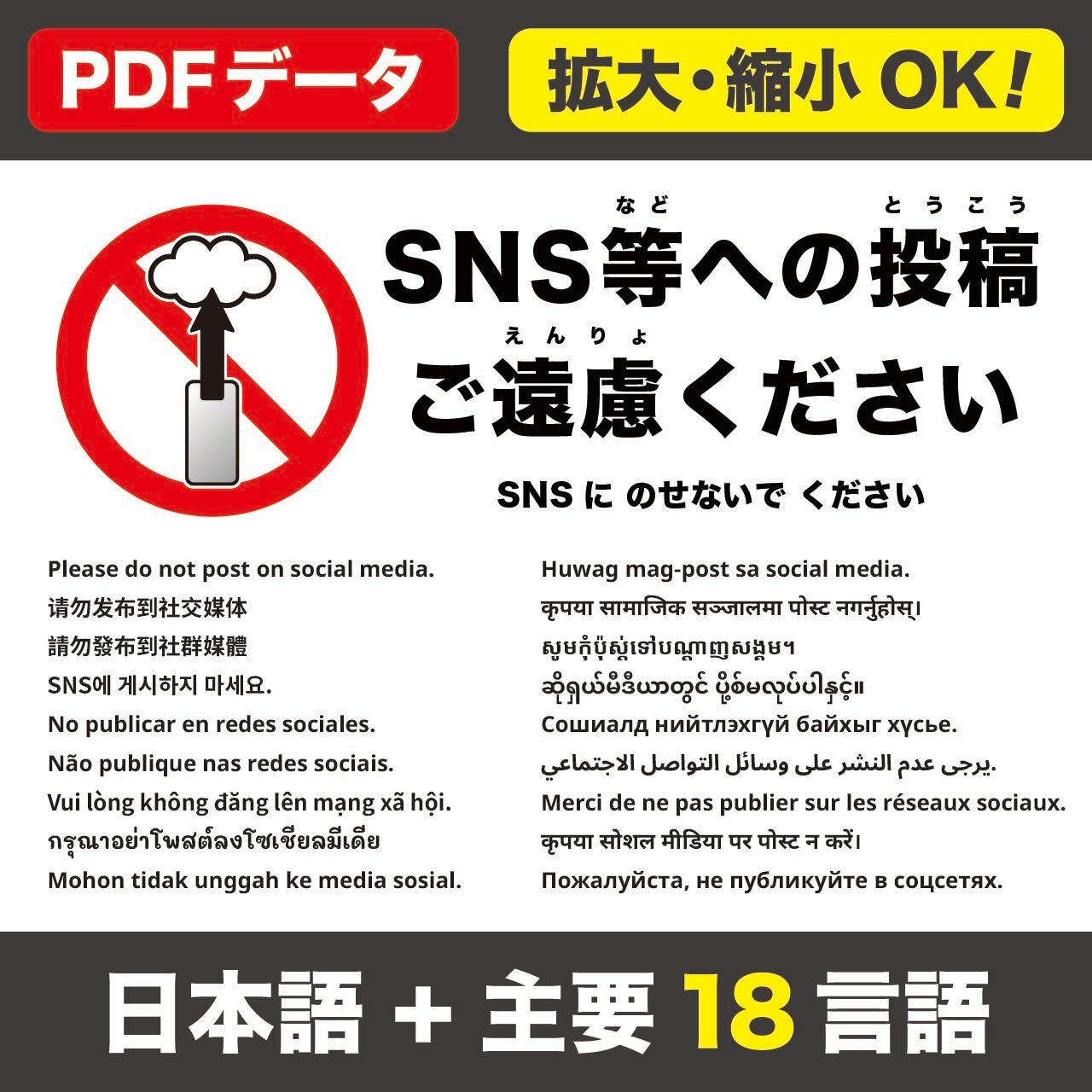 SNSなどへの写真・動画の投稿を控えるようお願いする張り紙です。