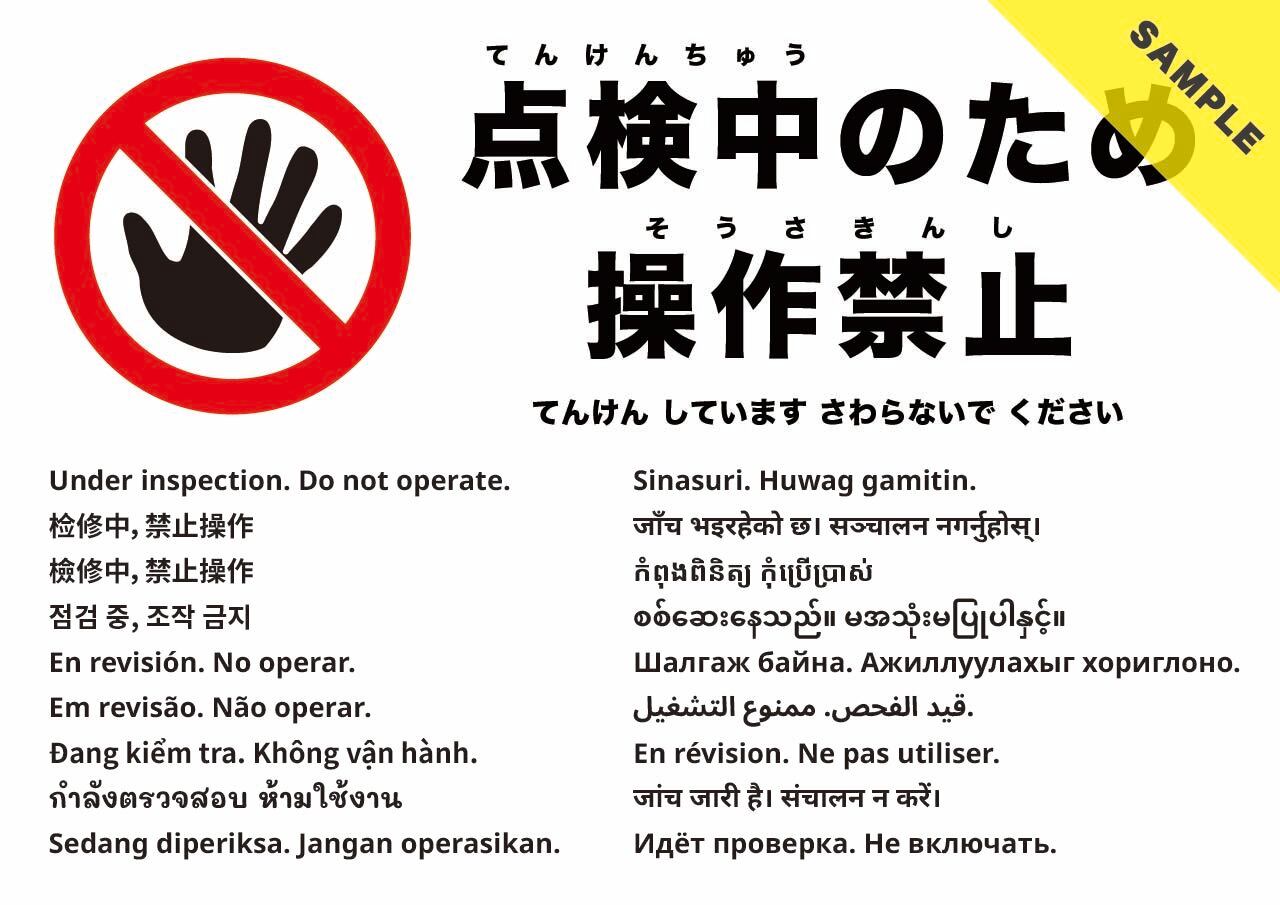 点検中につき機器の操作を控えるよう求める張り紙です。