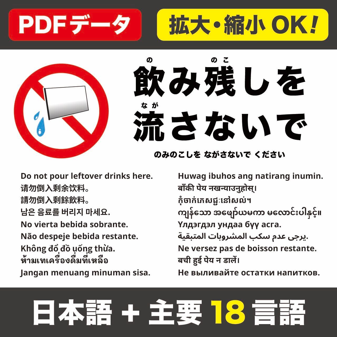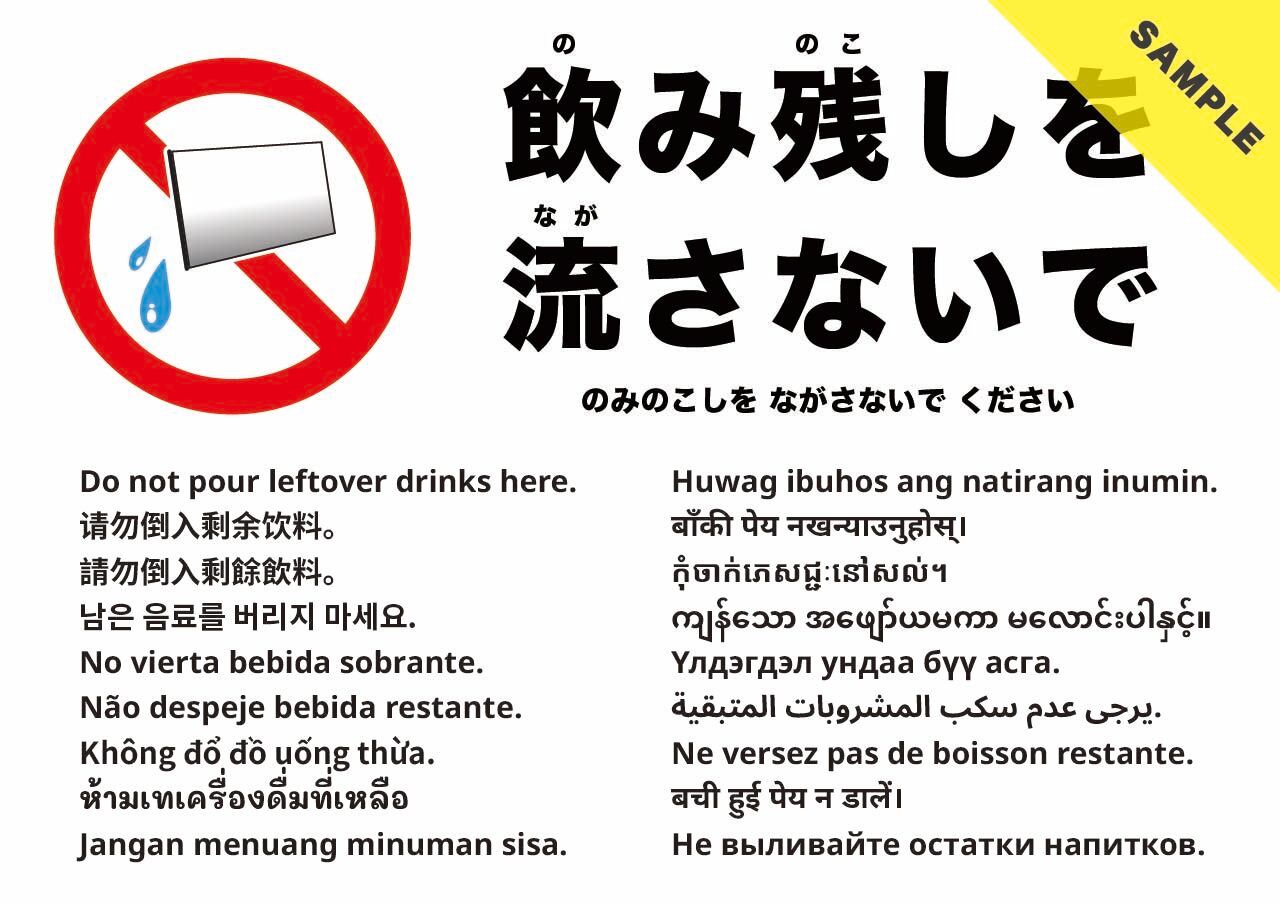 飲み残しを流しや排水口に流さないようお願いする張り紙です。
