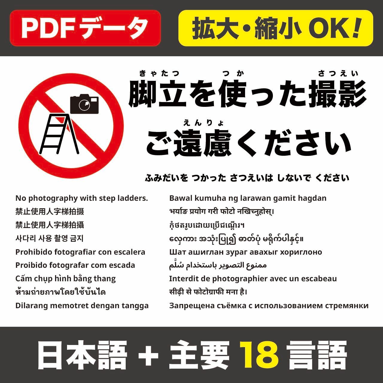 脚立を使用しての撮影を控えるようお願いする張り紙です。
