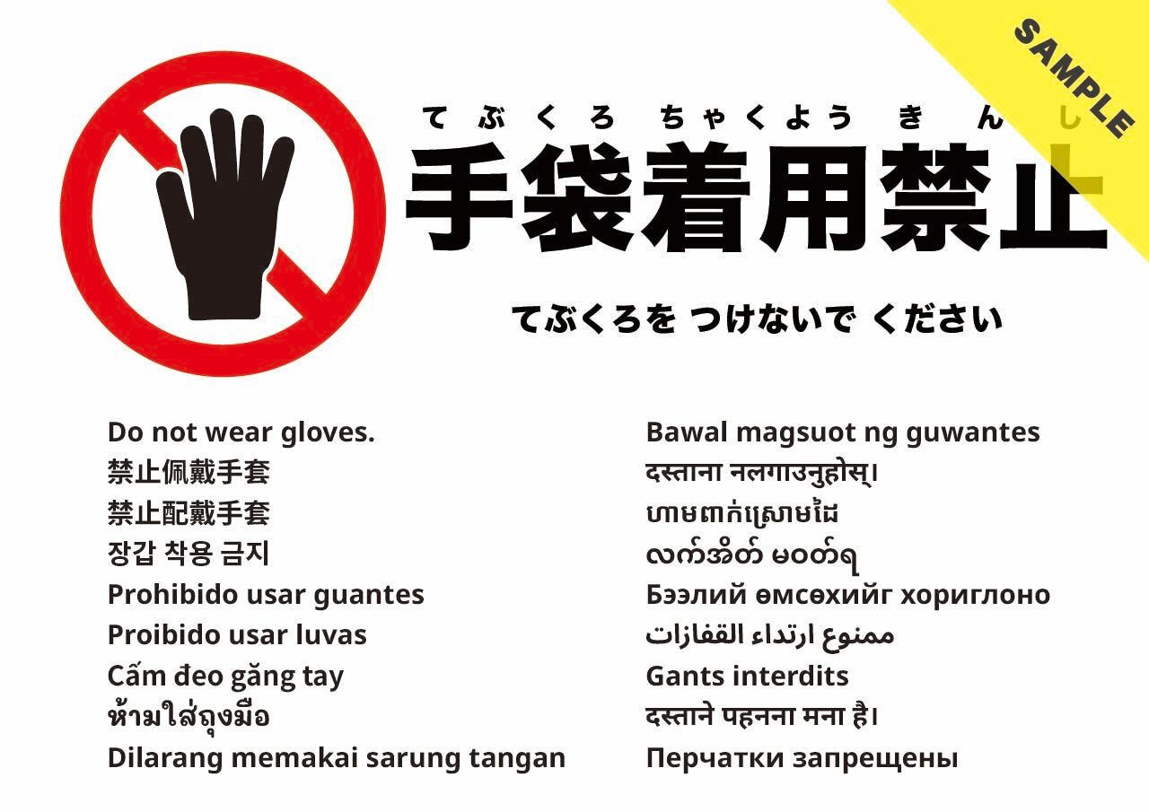 該当エリアで手袋の着用を控えるよう求める張り紙です。