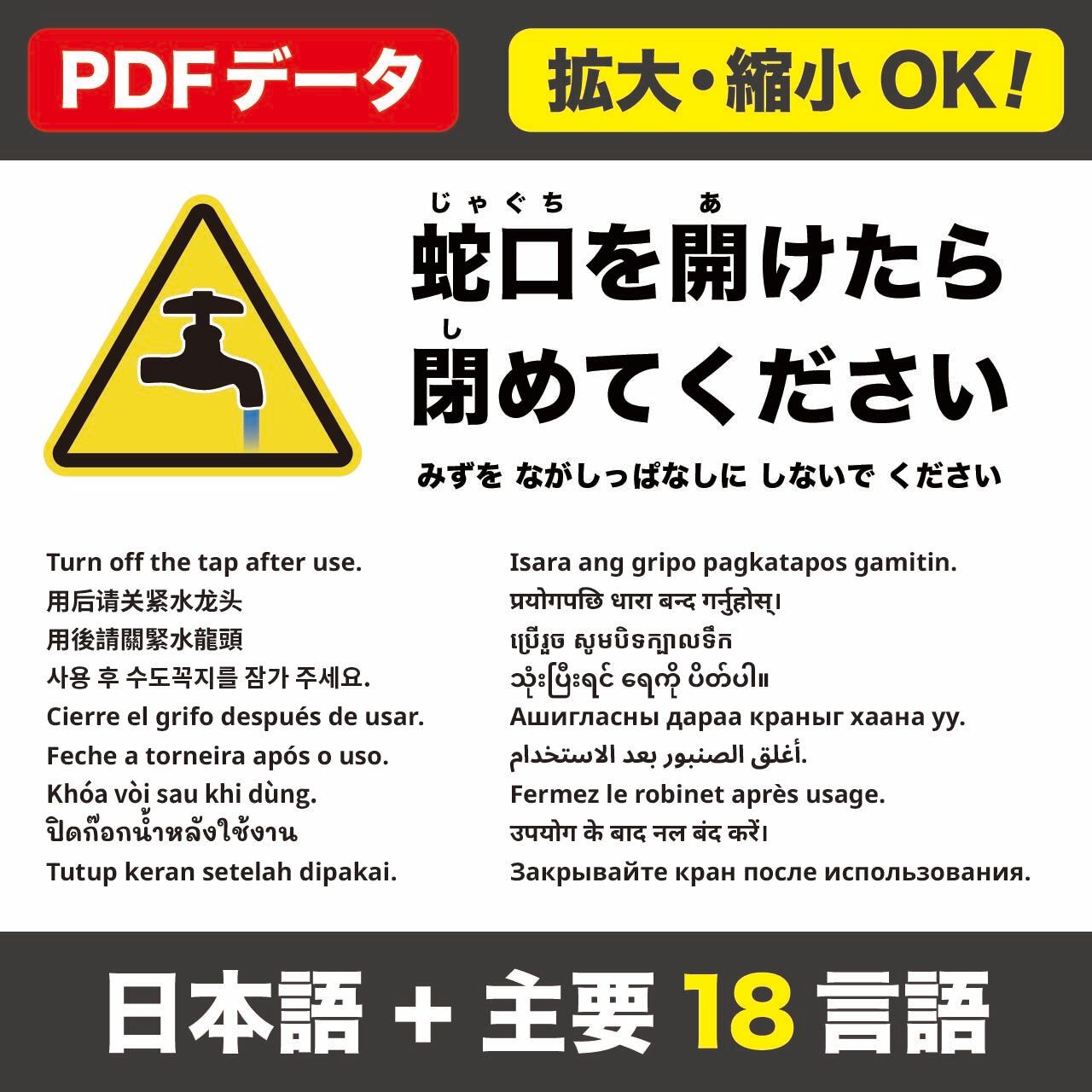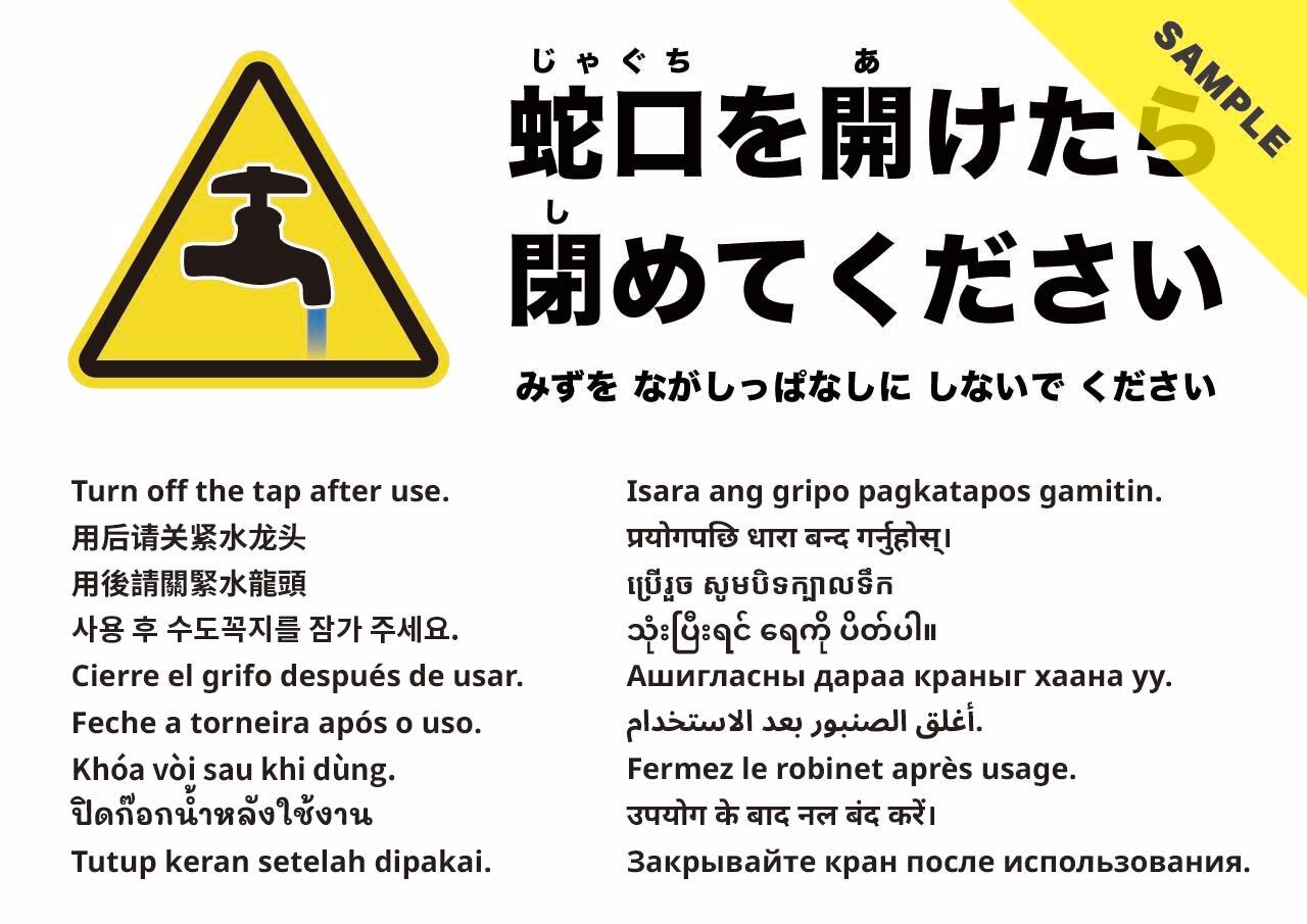 使用後は蛇口をしっかり閉めるようお願いする張り紙です。