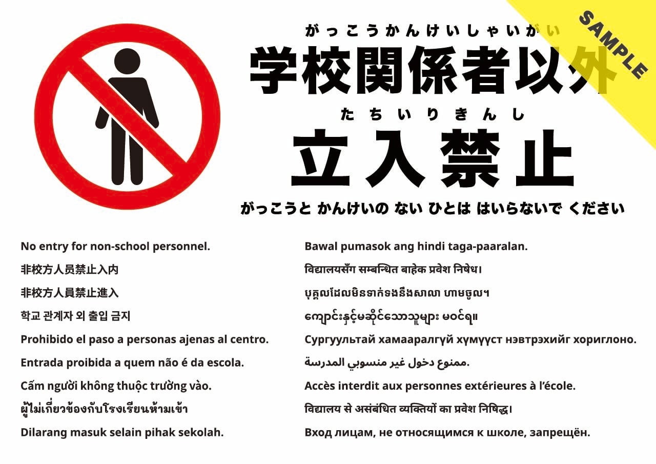 学校関係者以外の立ち入りを控えるよう求める張り紙です。