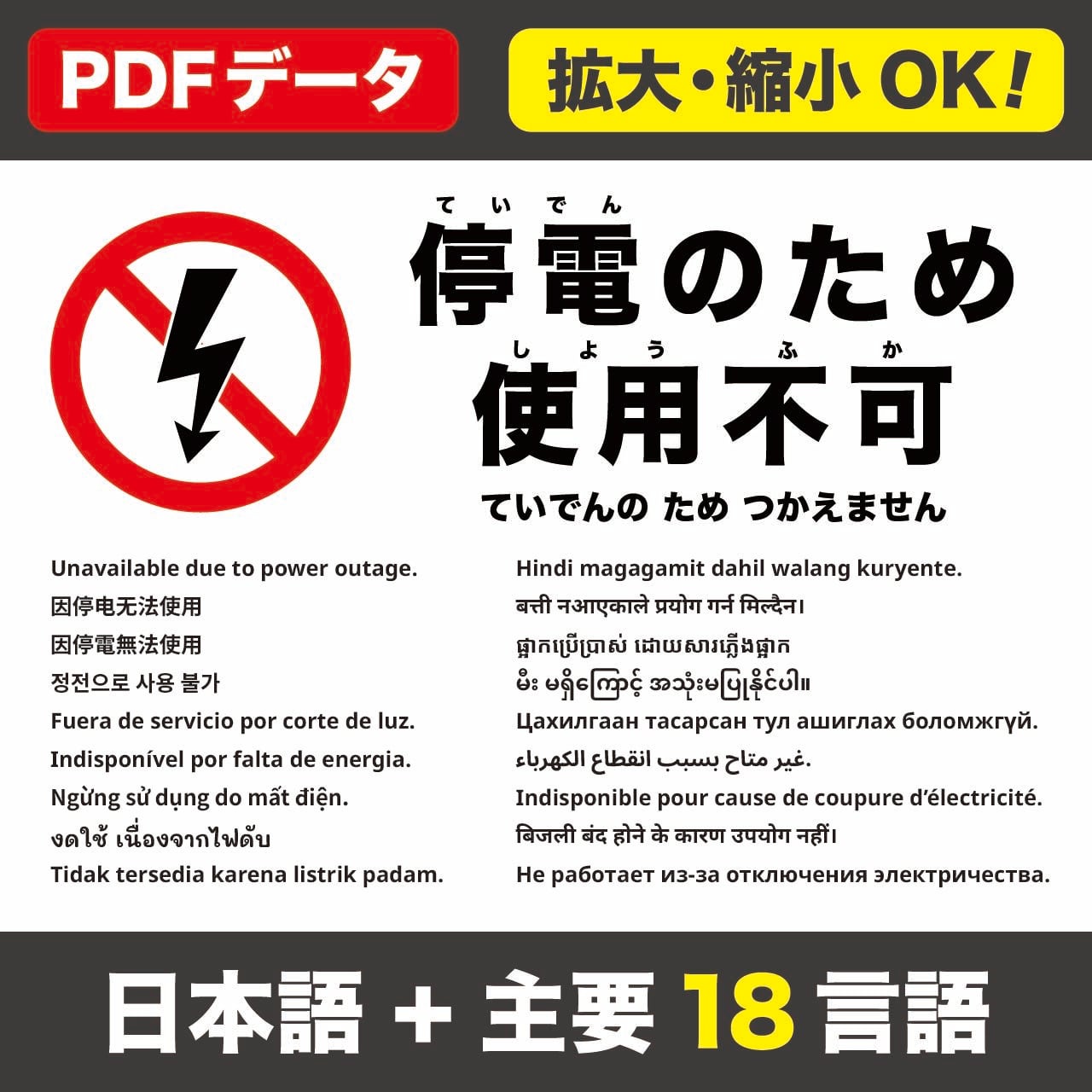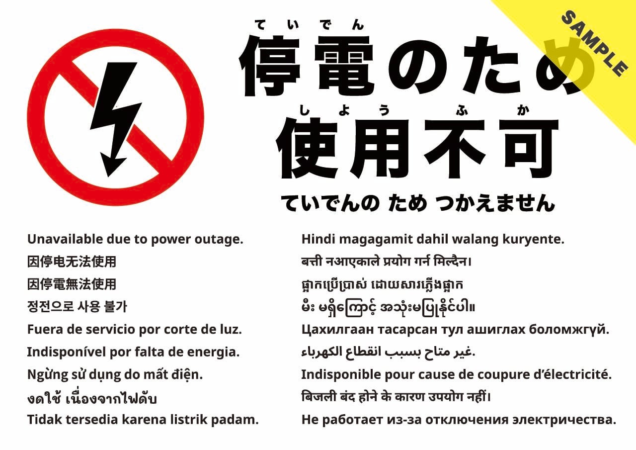 停電のため当該設備/区画が使用できないことを知らせる張り紙です。