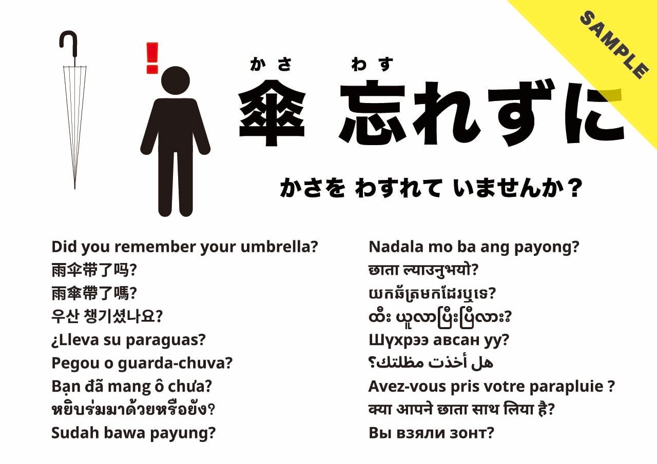 退館時に傘の持ち忘れがないよう促す張り紙です。