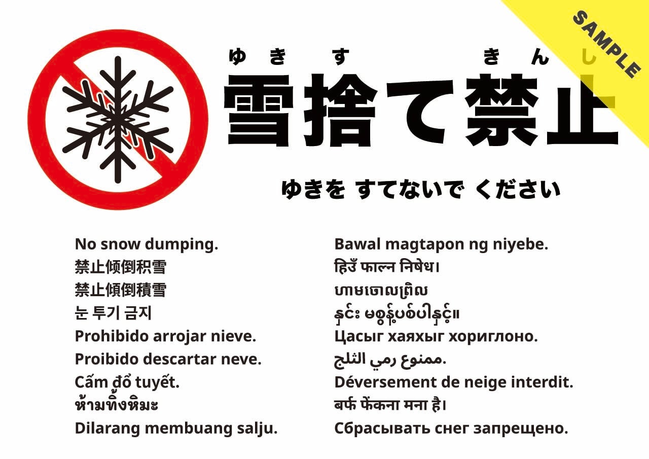 当該場所への雪の投棄を控えるよう求める張り紙です。