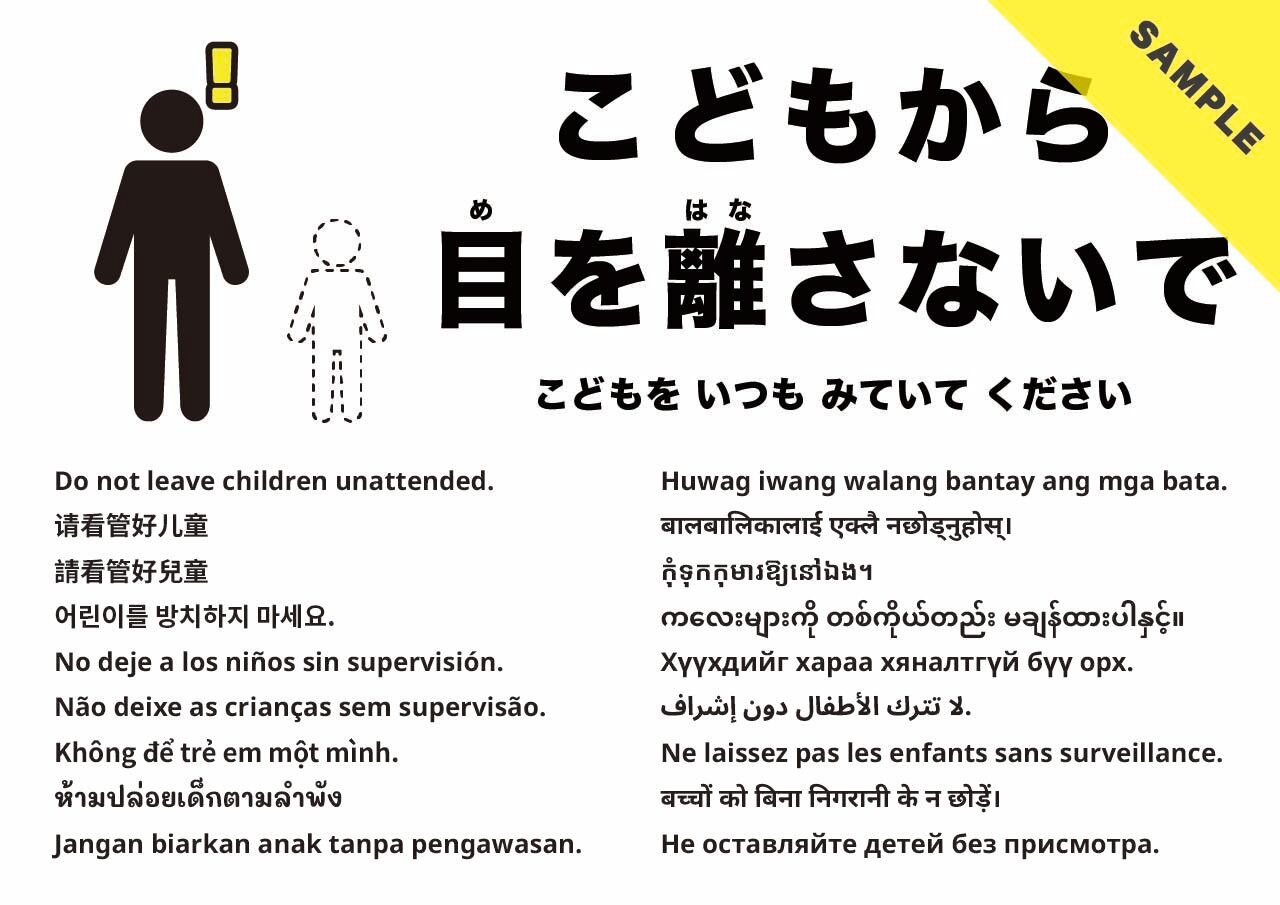 お子さまから目を離さないようお願いする張り紙です。