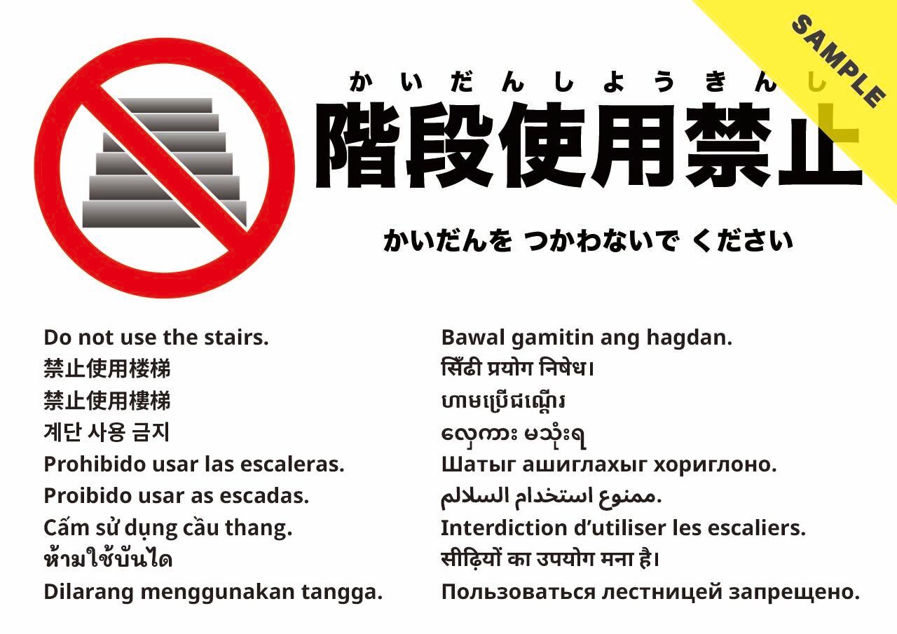 掲示場所:階段の上下端・踊り場手前・迂回案内の掲示位置。