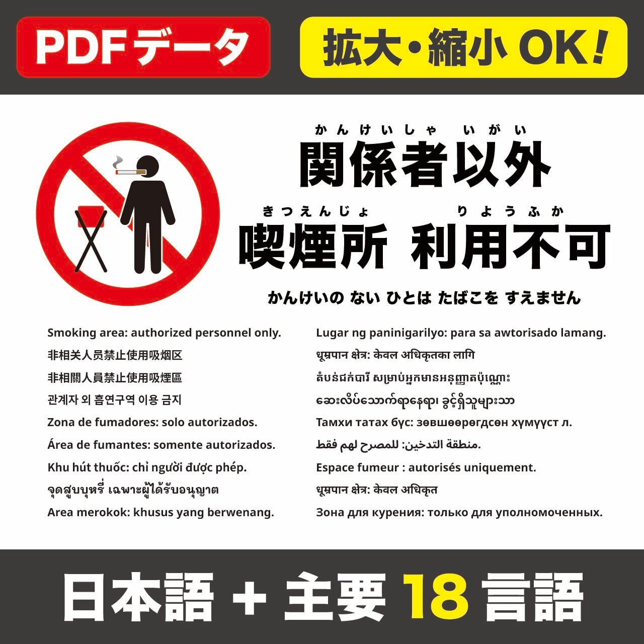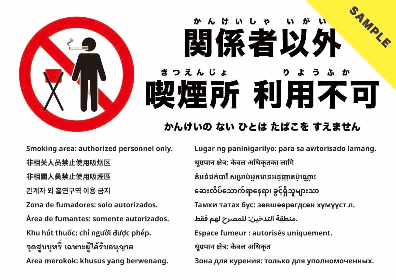 喫煙所の利用を関係者に限定している旨を周知する張り紙です。