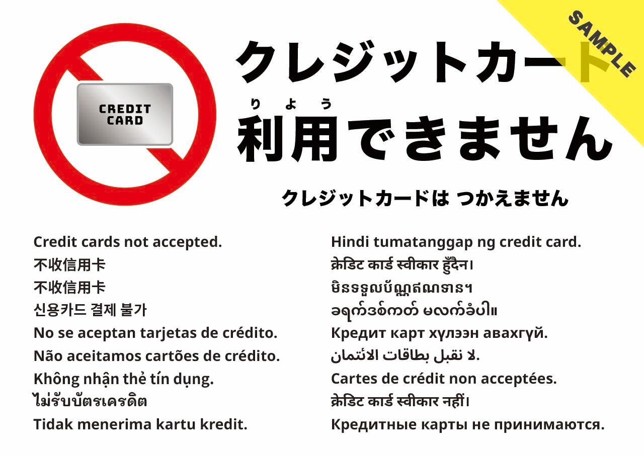 クレジットカード決済に対応していない旨を知らせる張り紙です。