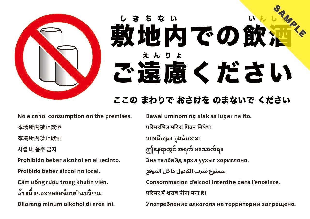 敷地内での飲酒を控えるようお願いする張り紙です。