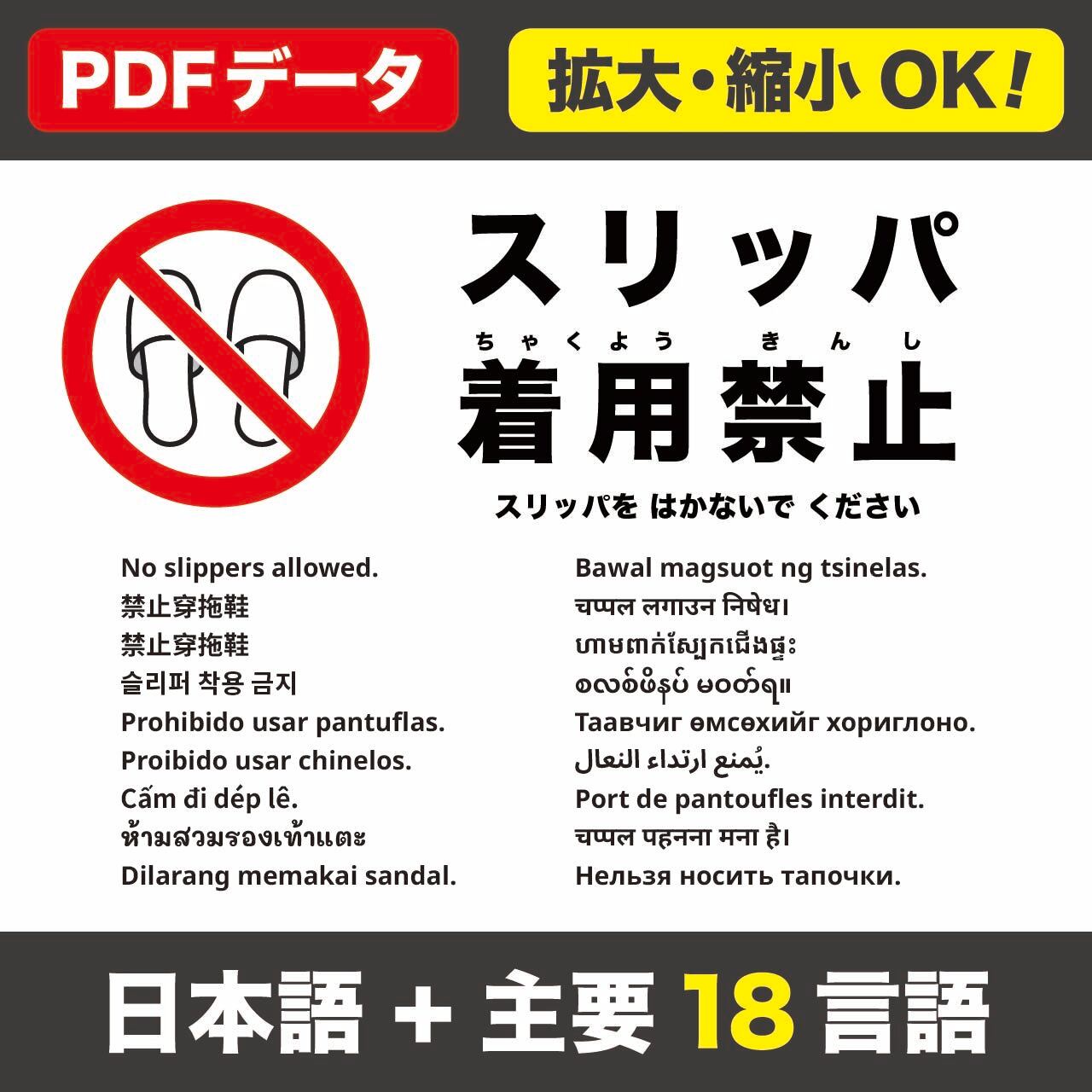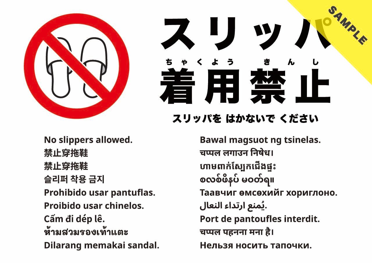 当該エリアでのスリッパ着用を控えるよう求める張り紙です。