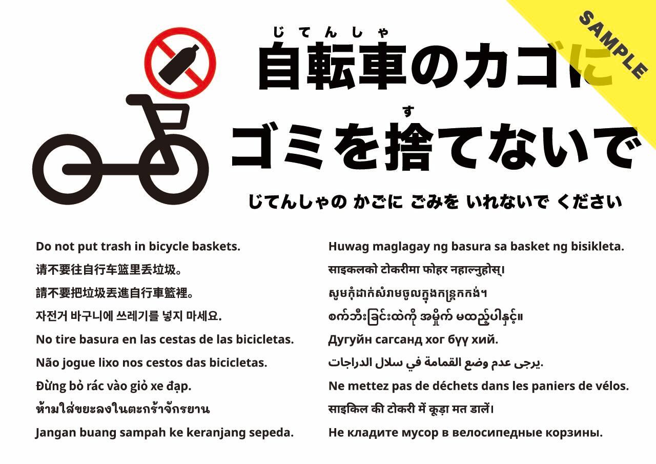 自転車カゴへの投棄を控えるよう求める張り紙です。