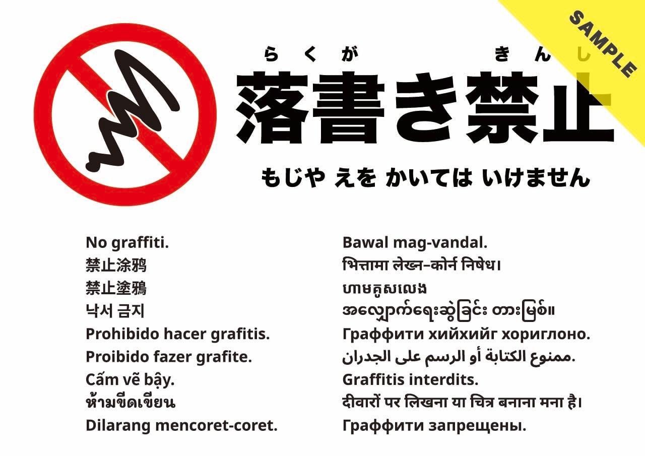壁面・設備等への落書きを控えるよう求める張り紙です。