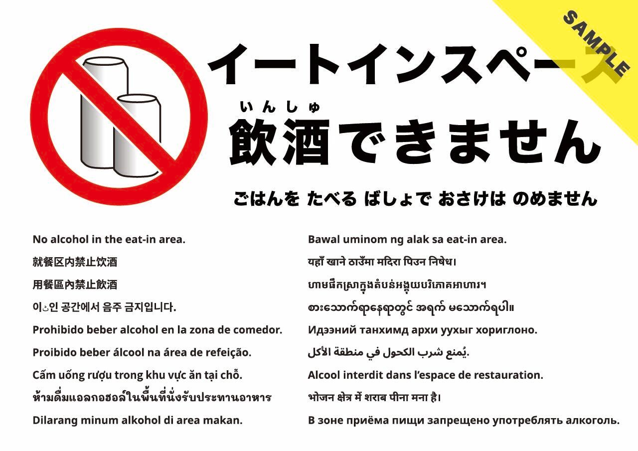 イートインスペースでの飲酒を控えるようお願いする張り紙です。