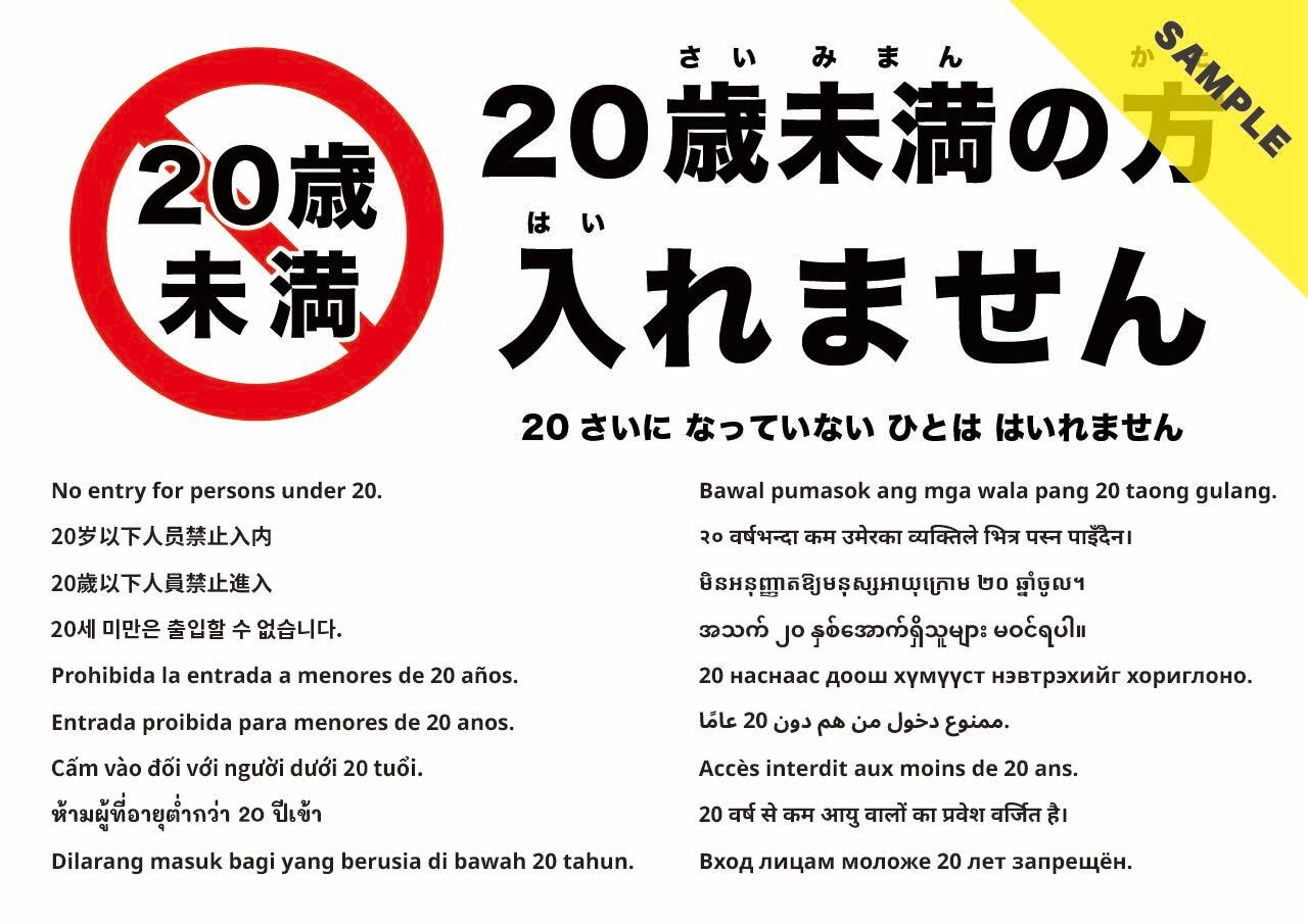 20歳未満の入場制限を案内する張り紙です。