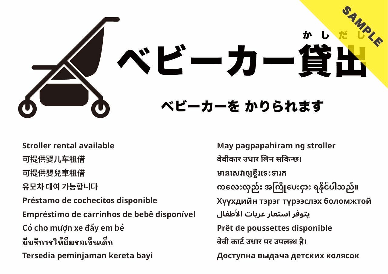 ベビーカーの貸出があることを案内する張り紙です。