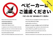 当該エリアでのベビーカー利用を控えるようお願いする張り紙です。