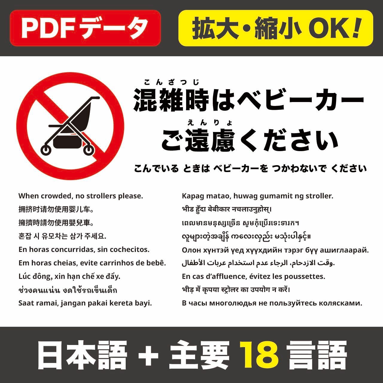 混雑時のベビーカー利用を控えるようお願いする張り紙です。