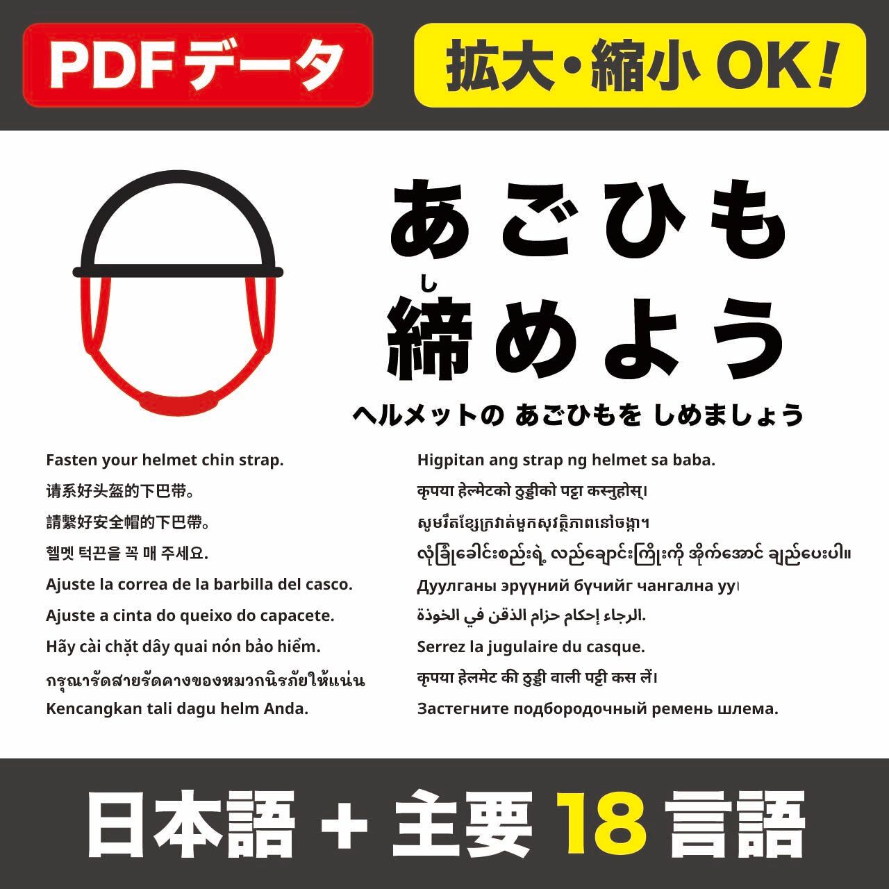 ヘルメットのあごひもを確実に締めるよう促す張り紙です。