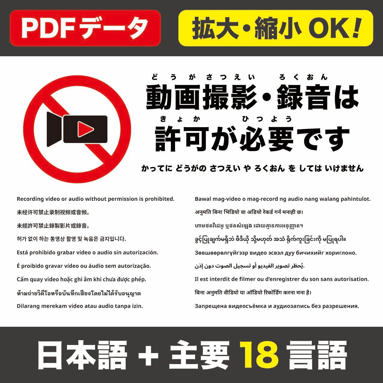 動画撮影・録音には事前許可が必要である旨を知らせる張り紙です。